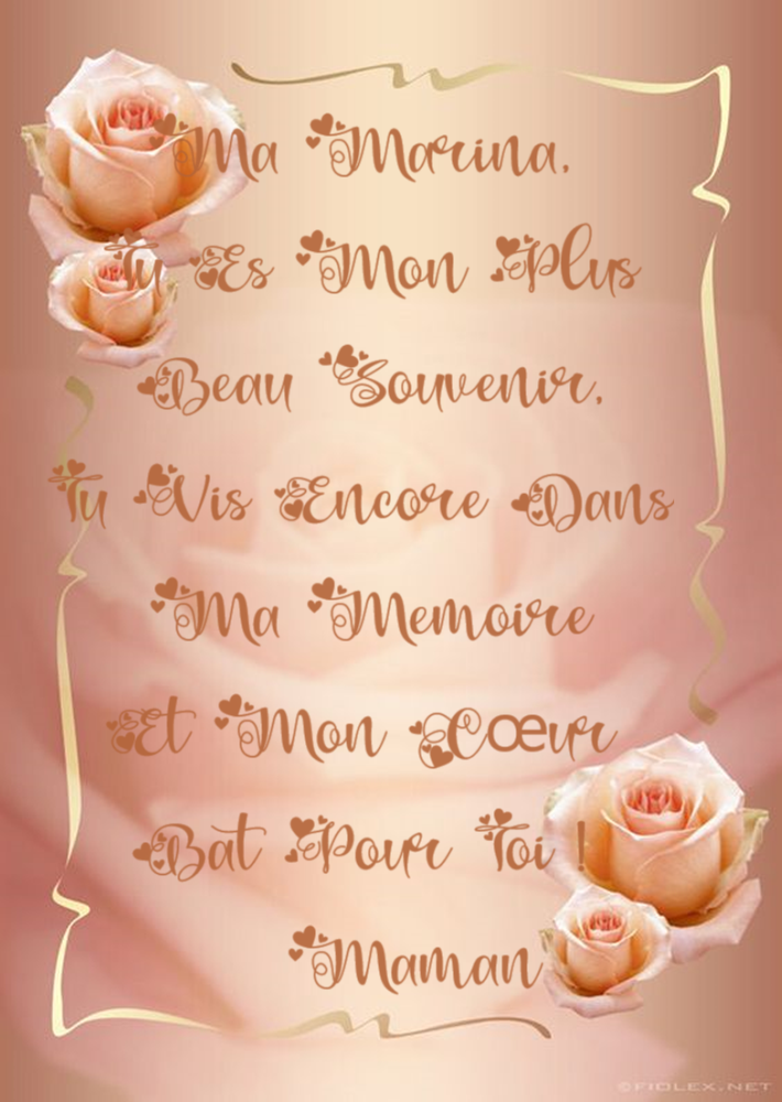 Ce soir, 22-06-2022, ça fait 22 mois que tu as commencé à fermer tes yeux bleu marine. Un mois et demi de réanimation ne t'a pas sauvée, je pense à toi de plus en plus, rien ne s'oublie et surtout pas toi, je ne suis pas seule dans la maison, mais sans toi je le suis. J'ai tout mon temps pour penser à toi, tu es mon plus beau souvenir. Je continue à trouver tes dessins, tes écrits, disséminés un peu partout dans la maison, merci pour le bonheur que tu m'as donné, par ta gentillesse, ta présence, tes regards qui cherchaient toujours mon approbation et la douceur de tes petites mains pour me coiffer lorsque la maladie de Lyme m'empêchait de le faire.